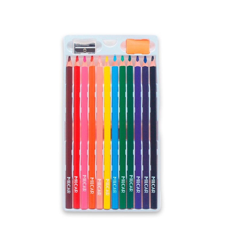 • Incluye tajador y borrador, proporcionando un set completo.