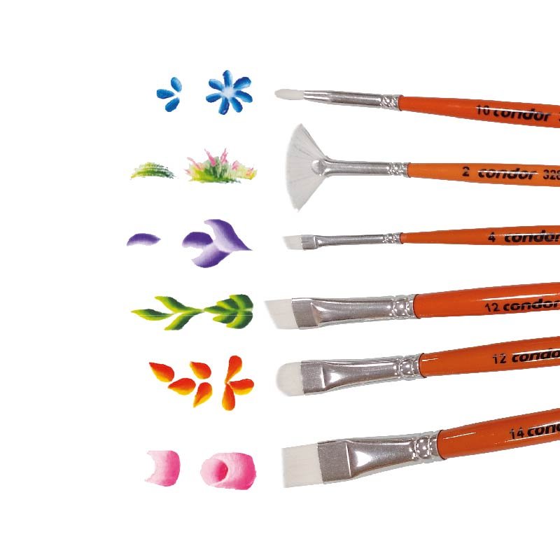 • Pinceles con pelo sintético de alta calidad.